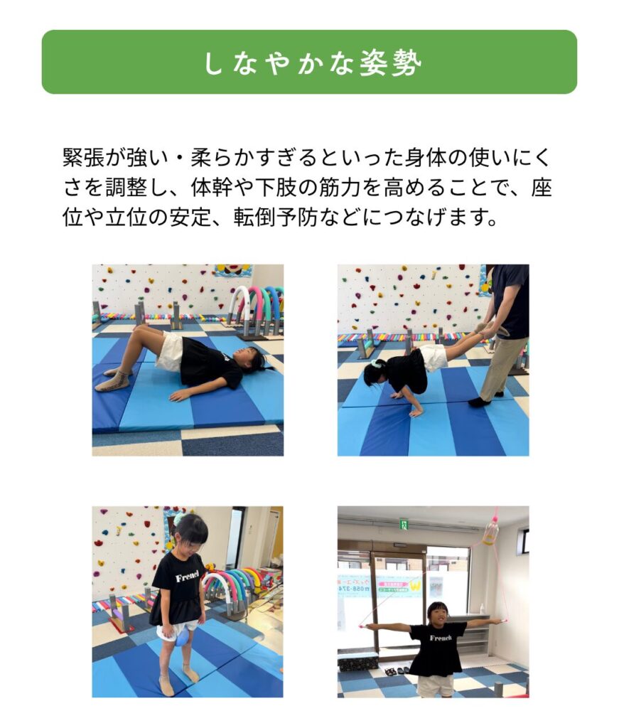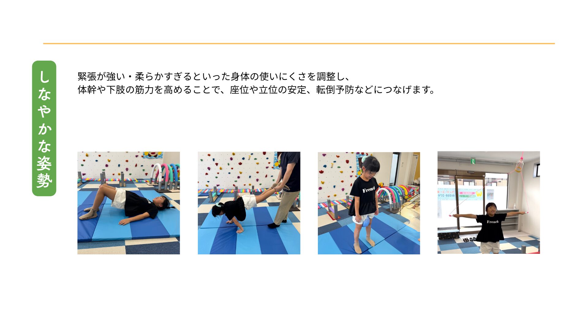体幹の安定や筋力が高まり、日常動作や集団活動への参加がスムーズになります。